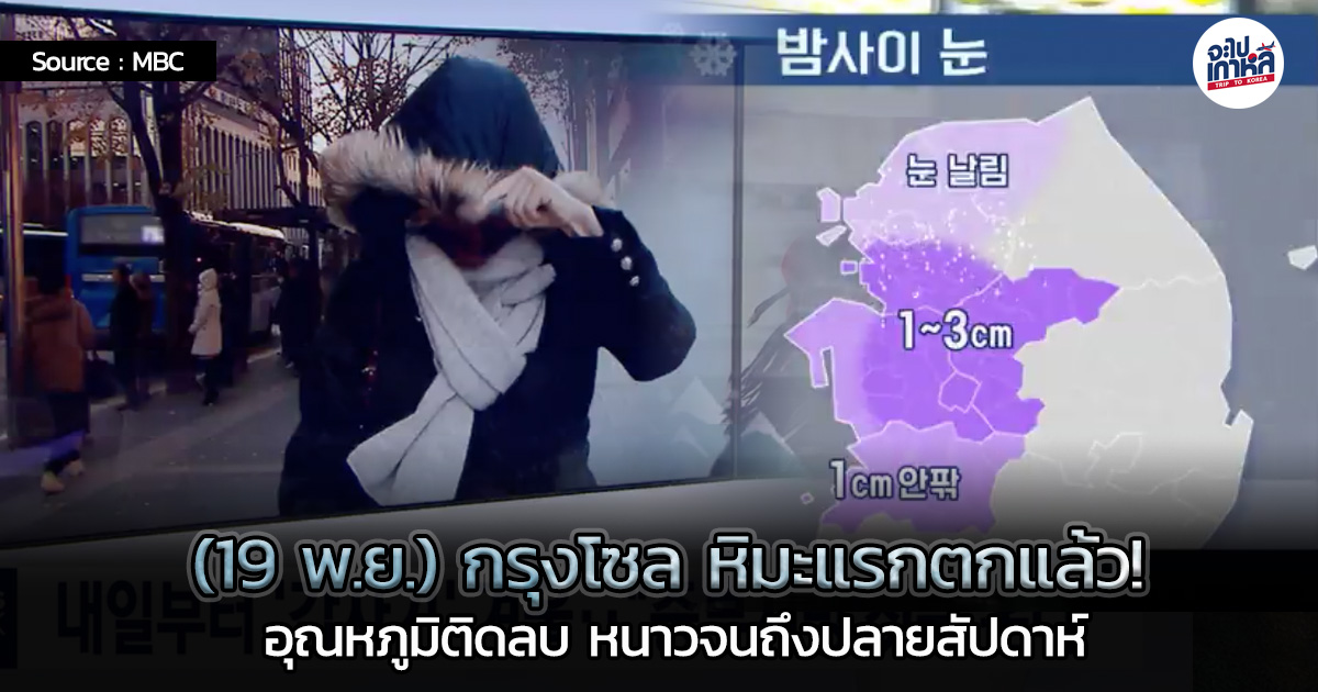(19 พ.ย.) รายงานสภาพอากาศ มีหิมะตกบางส่วนทางทิศตะวันตกของเกาหลีในช่วงเช้ามืด ตกสูงสุด 3 ซม. และในโซลที่มีหิมะตกเป็นบางส่วน