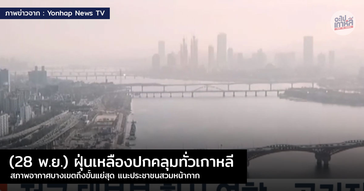 สภาพอากาศเกาหลีค่อนข้างแย่ในวันนี้ (28 พ.ย.) เมื่อฝุ่นเหลืองพัดผ่านคาบสมุทรเกาหลีในช่วงกลางคืน